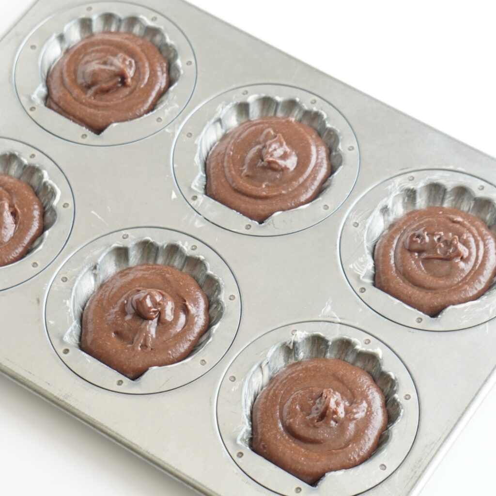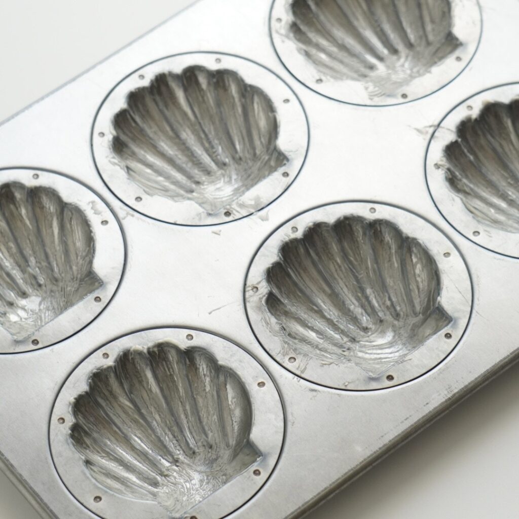 ❺マドレーヌ型に柔らかくしたバターを塗る。