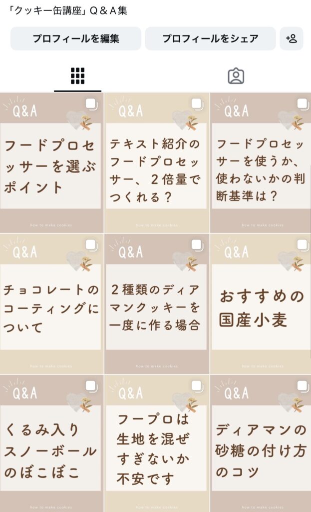 LINEで受講生からの質問に回答した内容を、Q&A集としてインスタグラムにまとめています。